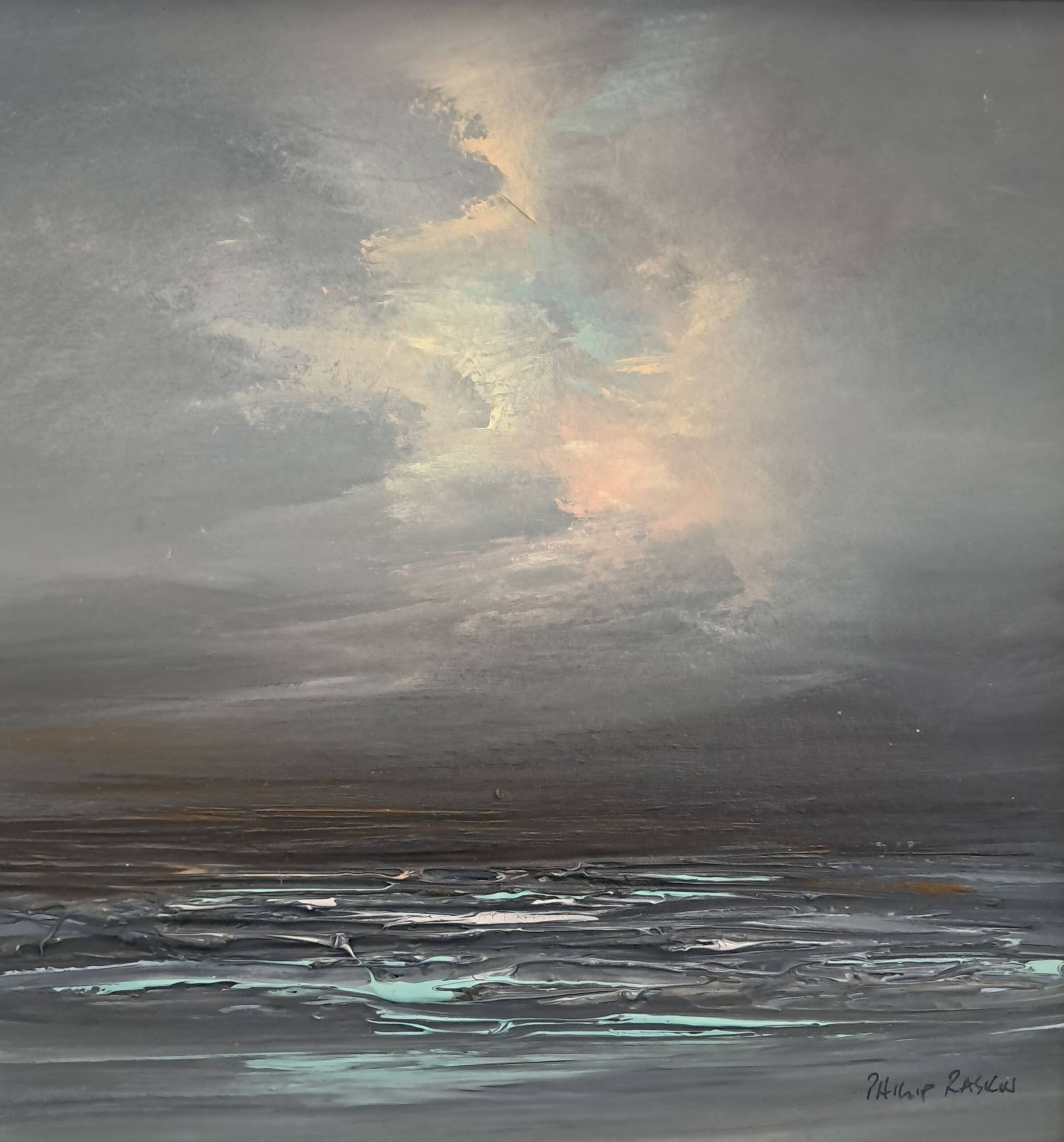 The overall effect quite magically captures the moods, light and textures of his native Scotland and Philip’s intuitive use of colour and narrow palette radiates a sense of peace and tranquillity.